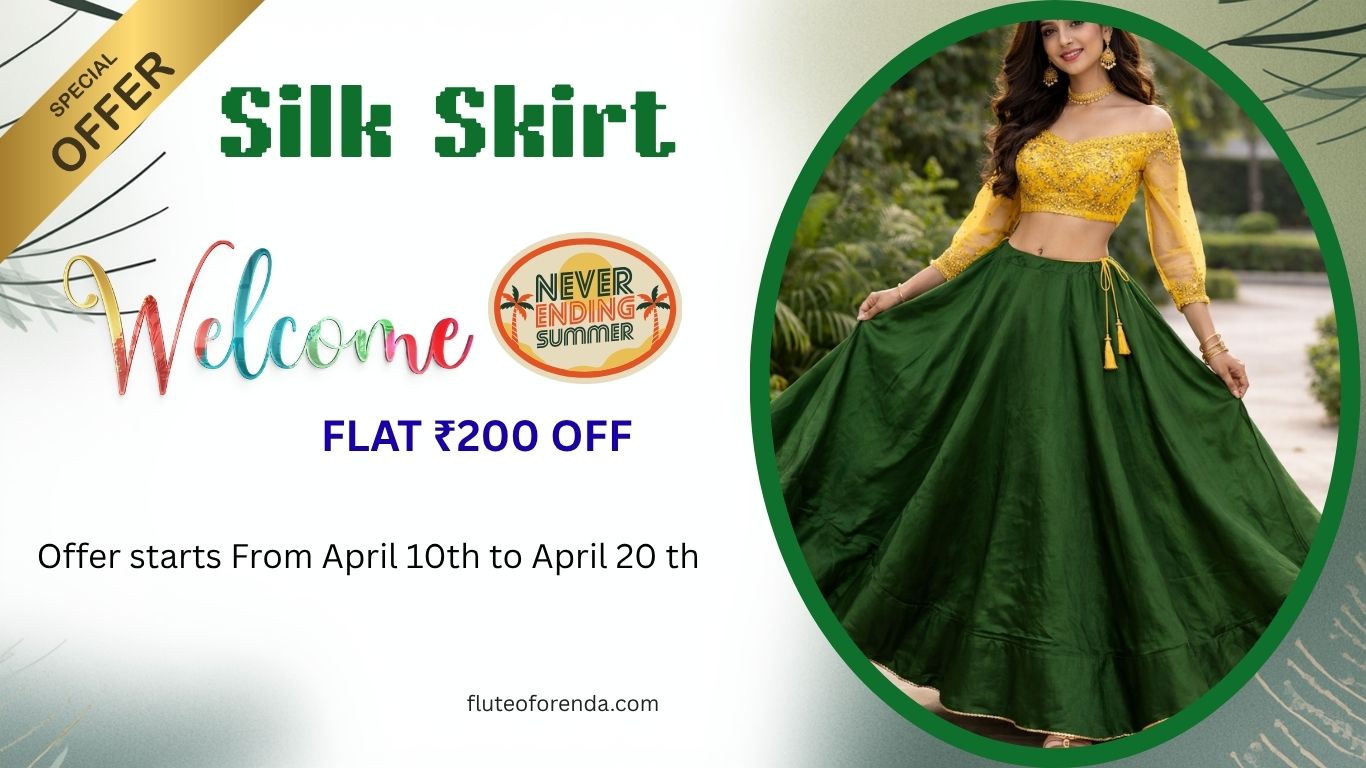 Tiered Cotton Green Plain Reeti Indian Skirt