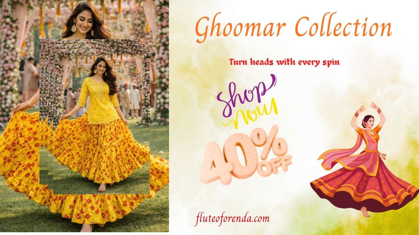 Flared Tiered Yellow Urmi Muslin Indian Skirt