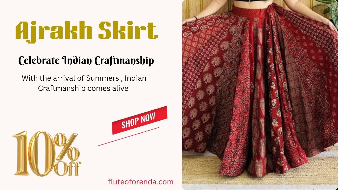 Ajrakh Multi Patch Esha Cotton Indian Skirt