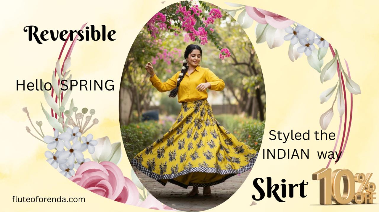 Reversible Silk Yellow Ira Indian Skirt