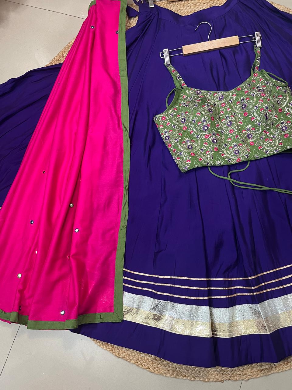 Color : Purple chaniya ,blouse green and dupatta fuchsia