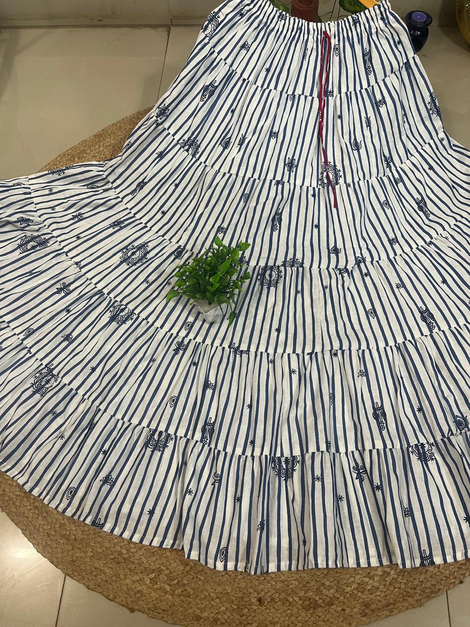 Embrace effortless elegance with this 7meter flared cotton skirt, designed for those who value comfort without compromise. The generous tiered silhouette creates beautiful movement, while premium cotton fabric remains weightless and breathable—ideal for warm weather wear. Perfect for casual outings and everyday styling, this versatile piece combines traditional Indian craftsmanship with modern comfort. The natural breathability ensures you stay cool throughout the day, making it an essential addition to your summer wardrobe.